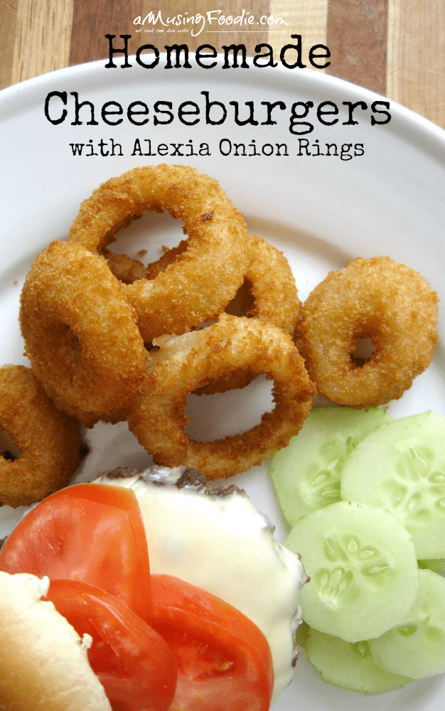 Alexia Foods sponsored this conversation about easy weeknight dinners, like this yummy recipe for homemade cheeseburgers alongside crispy Alexia Onion Rings with Panko Breading and Sea Salt.